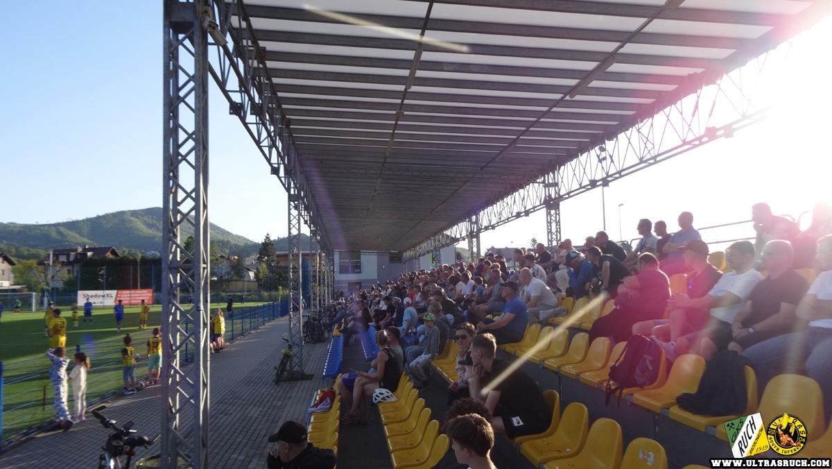 Po raz ostatni spotkaliśmy się na meczu domowym Ruchu Radzionków w sezonie 2024/2025.Rywalem było Podbeskidzie II Bielsko Biała, czyli rywal, który raczej nie mógł przyciągnąć liczniejszej widowni, jednak postanowiliśmy zrobić skromną mobilizację, by taka atmosfera była na miarę naszych możliwości.